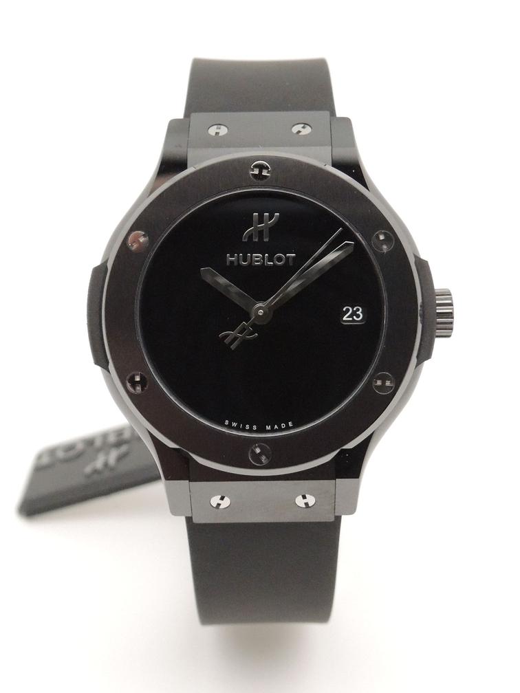 Full steel, black dial, applied stick markers, date, sapphire glass, screw down crown, automatic movement. With original box and papers, full set!