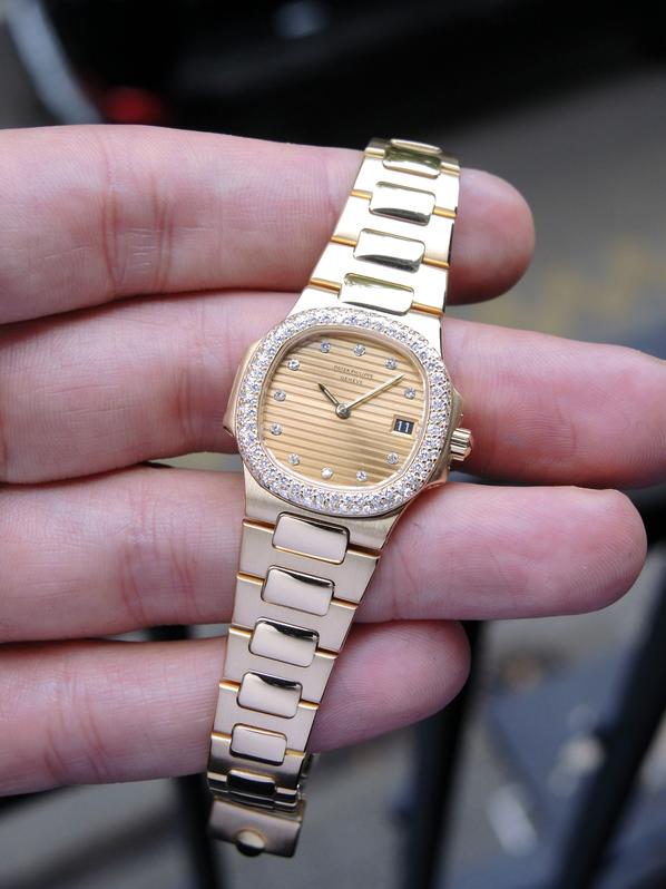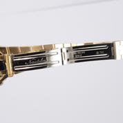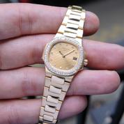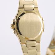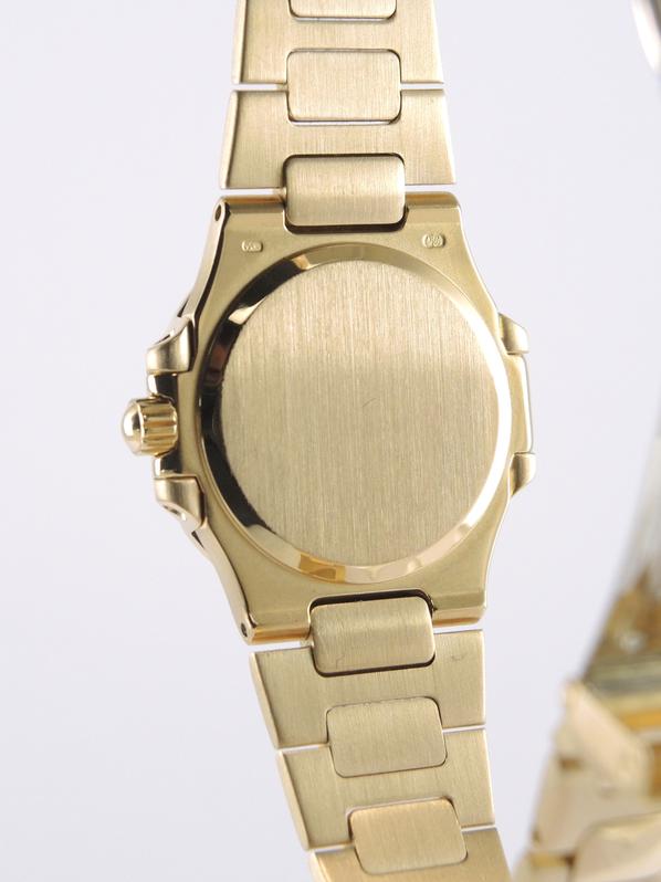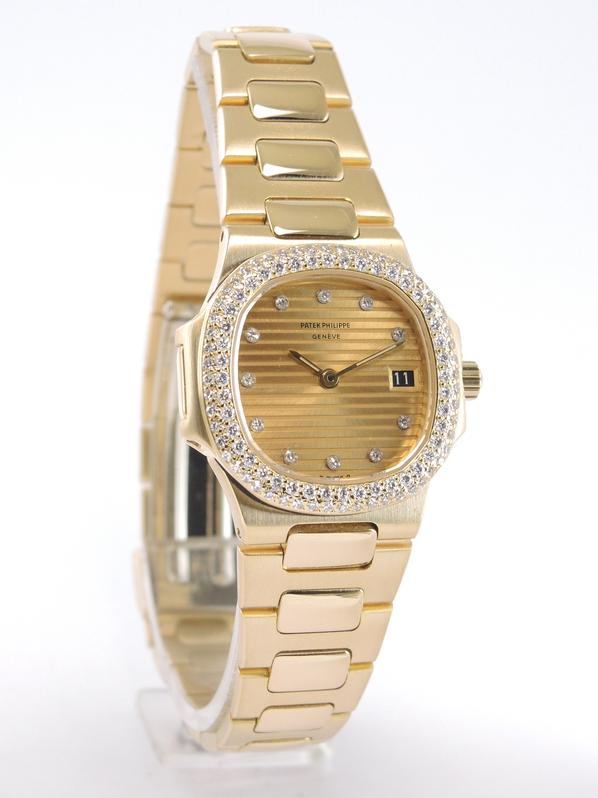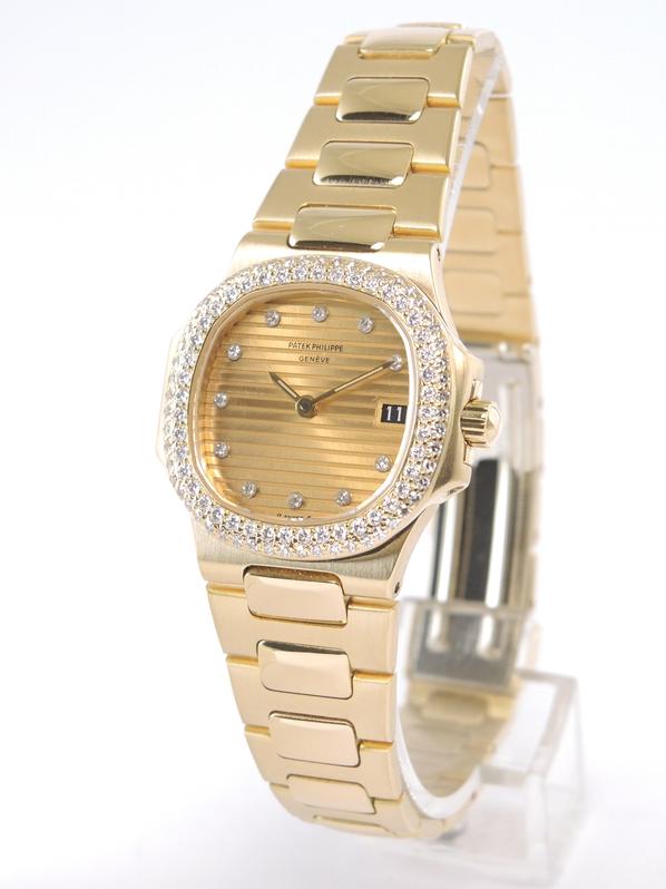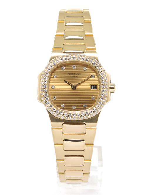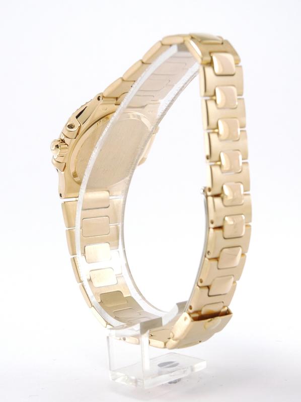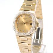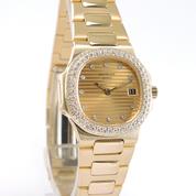 Full tellow gold, factory diamond set bezel, champagne "Sigma" dial with diamond markers, date, sapphire glass, quartz movement. Gerald Genta's masterpiece!