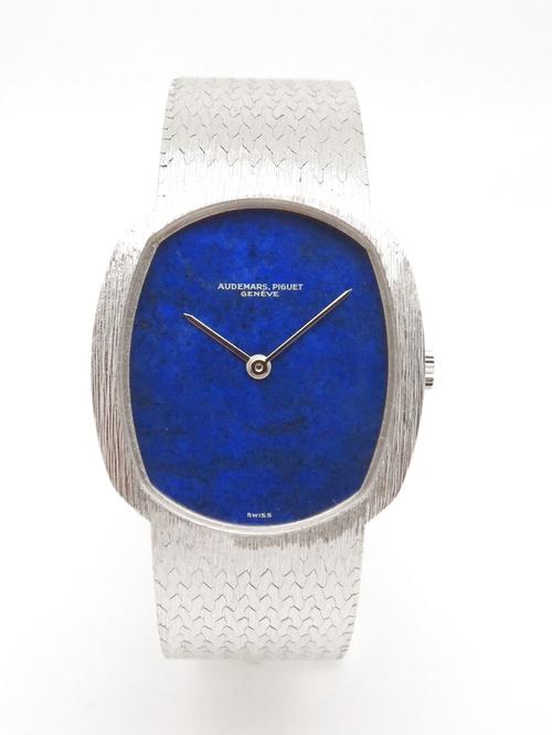 Complete white gold case, lapis lazuli dial, mechanical movement. Superb 1970s watch with integrated bracelet. With AP service in 2022.