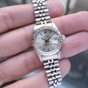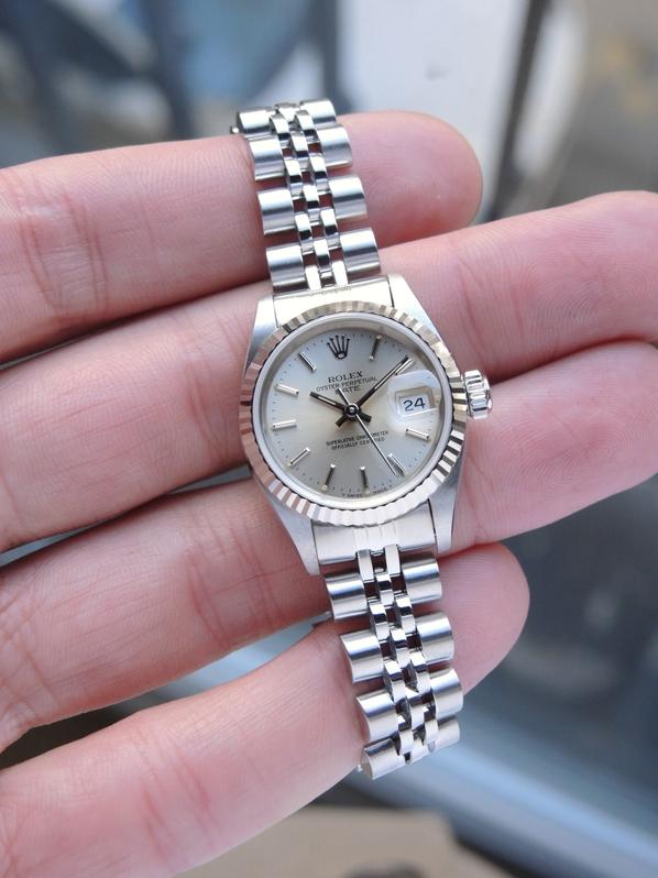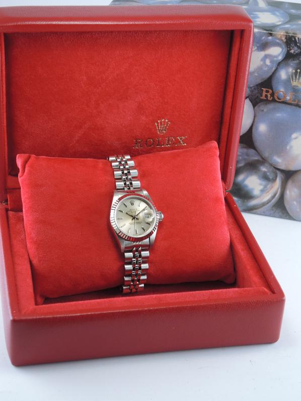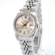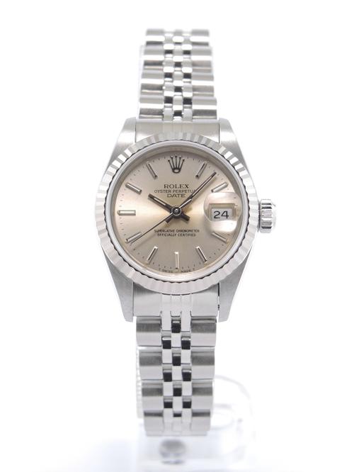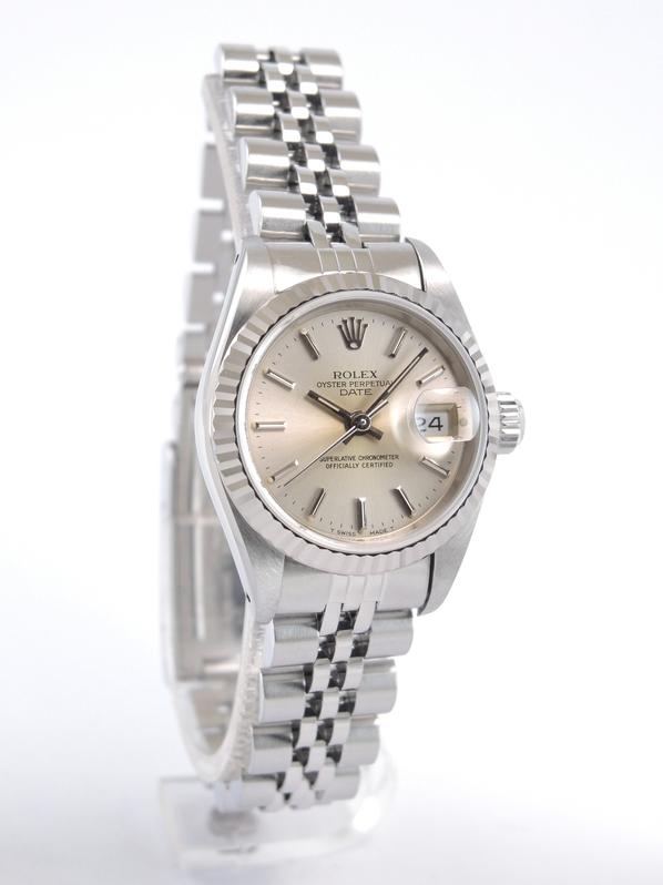 Full steel, Jubilee bracelet, silver sunburst dial, applied stick markers, date, sapphire glass, white gold fluted bezel, screw down crown, chronometer certified automatic movement (COSC). With original box.