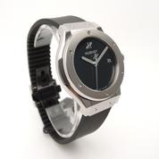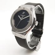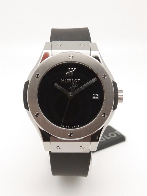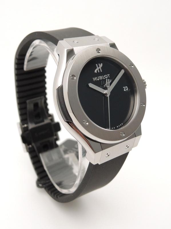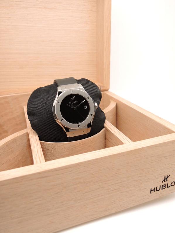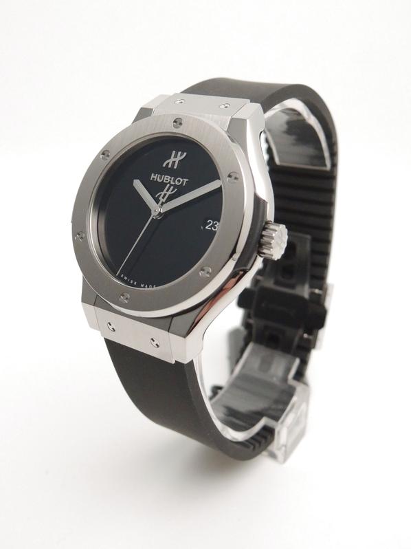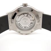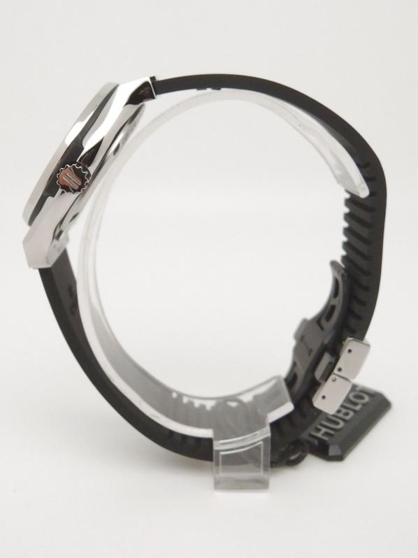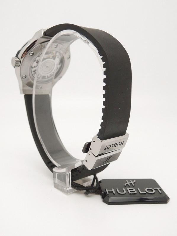 Ref 565.NX.1270.RX.MDM Titanium case with black rubber strap and Hublot deployant buckle, black dial, baton markers, date, sapphire crystal, transparent case back, automatic movement. Delivered with original box and papers, complete Hublot set! BRAND NEW!