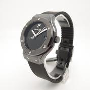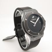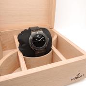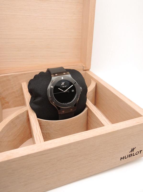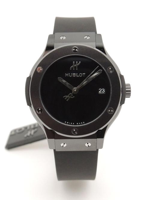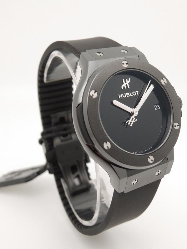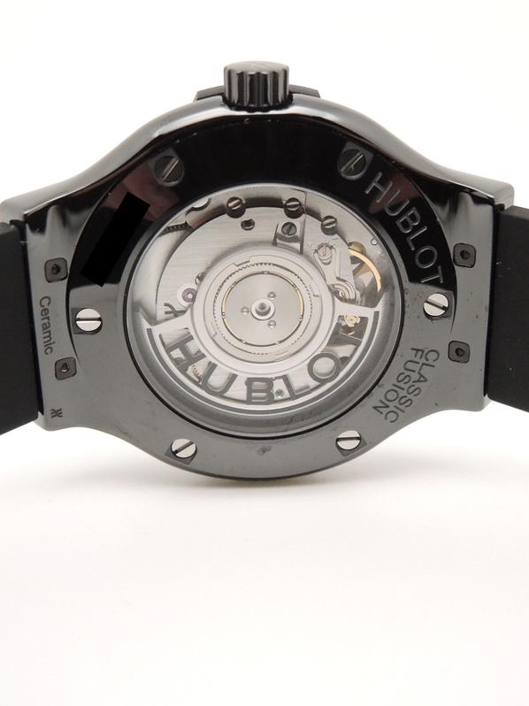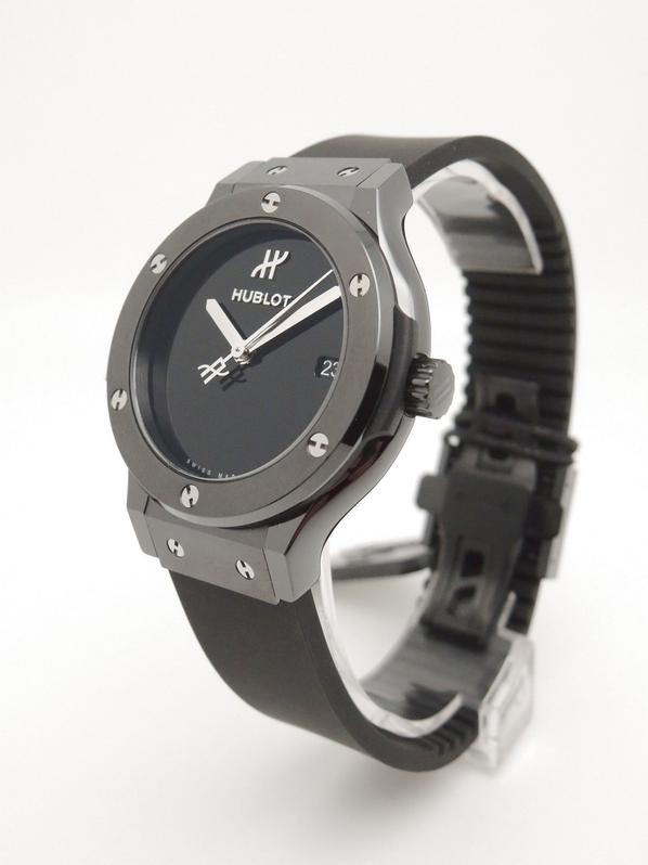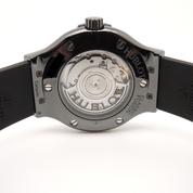 Ref 565.CX.1270.RX.MDM ceramiccase with black rubber strap and Hublot deployant buckle, black dial, baton markers, date, sapphire crystal, transparent case back, automatic movement. Delivered with original box and papers, complete Hublot set! BRAND NEW!