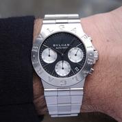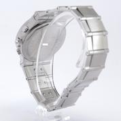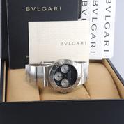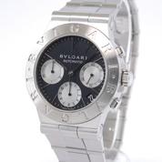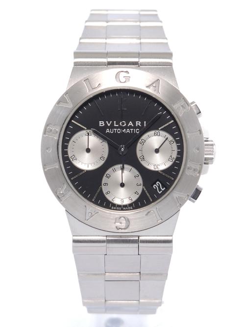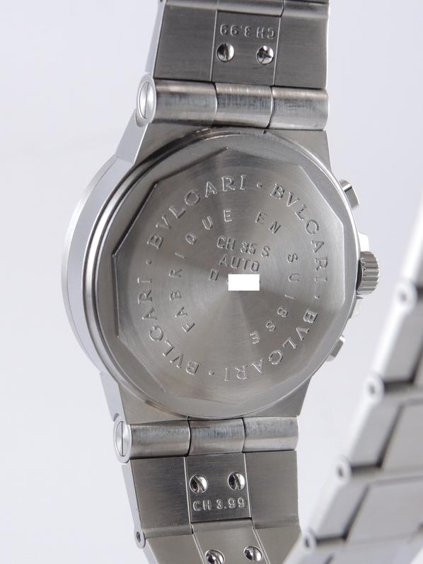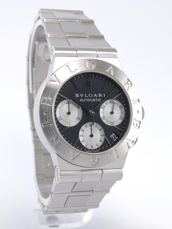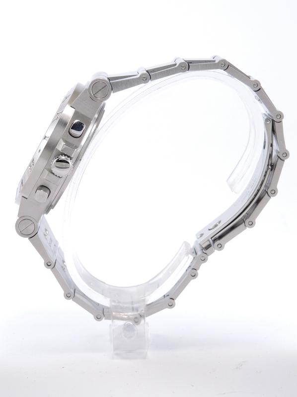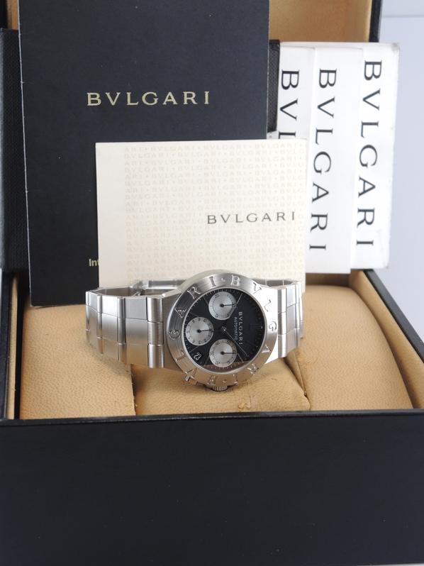 Full steel, black dial, applied stick markers, chronograph, three registers, date, sapphire glass, screw down crown, automatic movement. With original box, service papers and papers, full set!