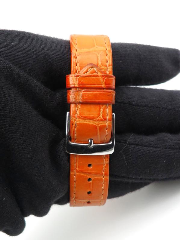 Steel case on leather strap, 29 x 42 mm, pin buckle clasp, white dial with arabic numeral markers, date, sapphire glass and caseback, automatic movement. With original box and papers, full set!