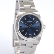 Full steel, Oyster bracelet, sunburst blue dial "T Swiss Made T", applied stick markers, sapphire glass, smooth bezel, screw down crown, chronometer certified automatic movement (COSC).